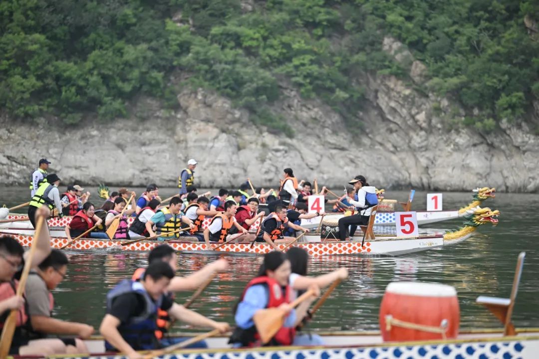 參觀學(xué)習(xí)后,團(tuán)員青年們來(lái)到雁棲湖水上運(yùn)動(dòng)中心,在專業(yè)教練的培訓(xùn)和指導(dǎo)下,學(xué)習(xí)中華傳統(tǒng)龍舟競(jìng)渡文化和劃龍舟技巧,并進(jìn)行了激烈的龍舟比賽。在比賽中,各支隊(duì)伍通力協(xié)作、奮勇?tīng)?zhēng)先,展現(xiàn)了拼搏進(jìn)取的國(guó)貿(mào)體育精神和國(guó)貿(mào)青年朝氣蓬勃的精神面貌。