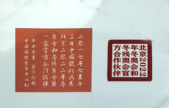 作品邊款:2017年7月13日,中國銀行成為北京2022年冬奧會和冬殘奧會第一家官方合作伙伴。