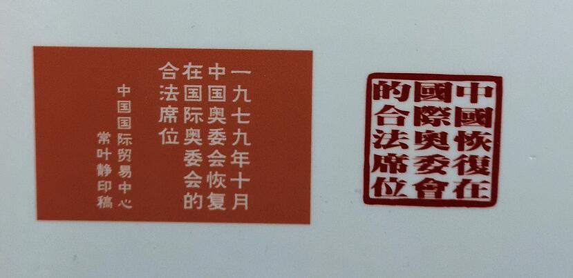 作品邊款:1979年10月,中國奧委會恢復在國際奧委會的合法席位。