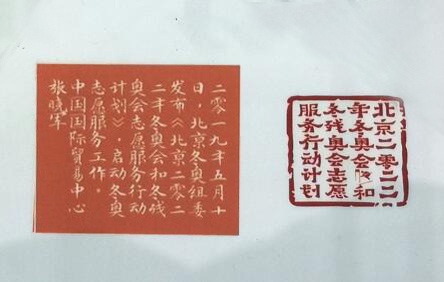 作品印面:北京2022年冬奧會和冬殘奧會志愿服務行動計劃
