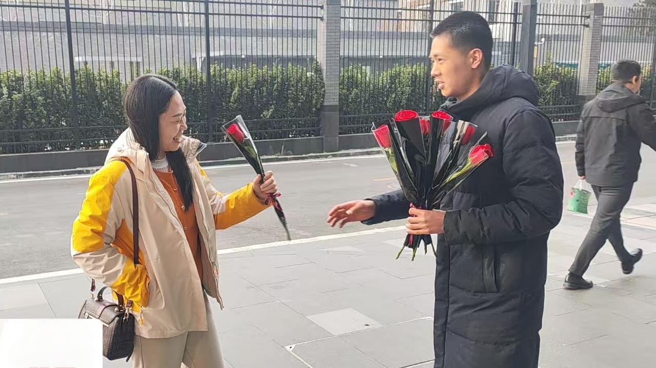 3月8日當天,提前準備好的物業(yè)工作人員早早地站在大廈入口處,手捧鮮花,笑容滿面地等待著每一位女性業(yè)主的到來。當業(yè)主們踏入大廈時,工作人員便熱情地將花束遞到她們手中,并送上一句真摯的“婦女節(jié)快樂”。接過鮮花的業(yè)主們驚喜不已,臉上洋溢著燦爛的笑容,不少人當場與物業(yè)工作人員合影留念,記錄下這一溫馨時刻。